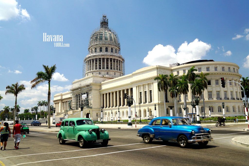 若说西班牙色彩广义地影响了哈瓦那的建筑风格,那么仔细找寻会发现许多美国建筑的影子。最明显的莫过于在哈瓦那老城和中哈瓦那 (Central Havana)交接处的古巴国会大厦(El Capitolio),大厦就像华盛顿白宫的孪生兄弟一样,从1929年落成到1959年古巴革命之前,一直是古巴政府所在地,革命成功之后成为了古巴科技和环境部的办公楼。大厦由古巴建筑师Govantes 和Cabarrocas设计建造,壮观的92米圆顶是受了巴黎万神殿的启发,恰到好处地融合了新古典主义和新艺术主义风格。